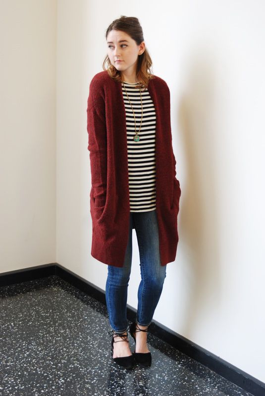 One of my top choices would be a cardigan. You can dress them up, dress them down. No wrong there. For me I like the thigh length ones, too. Not the hip or waist. (My personal prefrence.) I don’t think I’ve seen any of these look bad for photos. They flow. The make you look taller and slimmer! And you can wear them with a solid shirt and leggings or jeans, and you can even put them over a dress and it still look great.